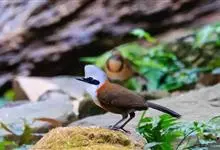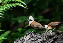 白颊噪鹛是雀形目噪鹛科噪鹛属鸟类,又称土画眉、小画眉、小噪鹃。成鸟额至头顶栗褐色,长眉纹、眼先和颊纹棕白色,眼后至耳羽深褐色,…全部>>