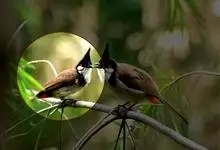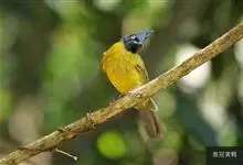 黑冠黄鹎:体长18-21厘米,是一种中等体型偏黄色鹎。整个头、颈、颏、喉黑色,头顶有显著直立的羽冠,黑色,上体褐橄榄黄绿色,下体橄榄黄色。虹膜偏红;嘴及脚黑色。…全部>>