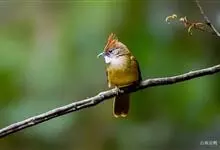 白喉冠鹎:体长20-25厘米。头顶红褐色,有长而细的羽冠、红褐色,头侧灰色。上体橄榄绿黄色,飞羽暗褐色,外翈茶黄色,尾下覆羽皮黄色。…全部>>