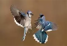 冠蓝鸦:体长22-30厘米,体重70-100克,翼展34-43厘米。顶冠明显,羽色为薰衣草蓝或淡蓝色,颈后、翅膀内侧、尾羽内侧和面部为白色。腹部为米白色,颈部有黑色领环,延伸至面部两侧,…全部>>