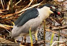 夜鹭是中型涉禽,体长46-60厘米。体较粗胖,颈较短;嘴尖细,微向下曲,黑色;胫裸出部分较少,脚和趾黄色;头顶至背黑绿色而具金属光泽;上体余部灰色;下体白色;枕部披有2-3枚长带状白色饰羽,下垂至背上,…全部>>