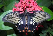 美凤蝶又名多型蓝凤蝶、大凤蝶,是鳞目凤蝶科凤蝶属动物。美凤蝶雄蝶无尾突,翅黑色,正面各翅室中部有深色条纹,分布蓝色鳞片,反面前后翅基部有红斑,后翅臀角有环状红斑。雌蝶具多型,前翅浅灰色,外缘和翅脉黑色,…全部>>