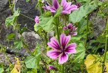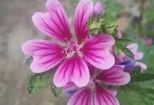锦葵:二年生或多年生直立草本,高50-90厘米,分枝多,疏被粗毛。叶圆心形或肾形,具5-7圆齿状钝裂片,两面均无毛或仅脉上疏被短糙伏毛。花3-11朵簇生,小苞片3,长圆形疏被柔毛;花紫红色或白色,…全部>>