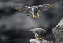 游隼yóu sǔn:是隼科、隼属的中型猛禽,共有18个亚种。体长41-50厘米。翅长而尖,眼周黄色,颊有一粗著的垂直向下的黑色髭纹,头至后颈灰黑色,其余上体蓝灰色,尾具数条黑色横带。…全部>>