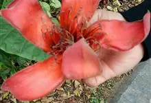 木棉是锦葵科、木棉属落叶大乔木,树皮灰白色,幼树的树干通常有圆锥状的粗刺;分枝平展。掌状复叶,小叶5-7片,长圆形至长圆状披针形,花单生枝顶叶腋,通常红色,有时橙红色,直径约10厘米;萼杯状,…全部>>