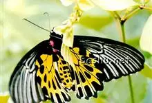 金裳凤蝶是凤蝶科、裳凤蝶属的动物。金裳凤蝶身体呈黑色,头、颈和胸侧有红毛,腹部有黑黄两色相间条纹,雄蝶前翅黑色,具黑天鹅绒光泽,各脉两侧灰白色,后翅金黄色,各室外缘有等腰三角形黑斑1枚,斑内侧有晕,…全部>>