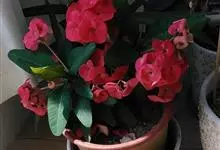 铁海棠为大戟科大戟属蔓生灌木植物;茎多分枝,具纵棱,呈旋转状;叶互生,通常集中于嫩枝上;每个花序基部边缘具微小的红色尖头;苞叶先端圆且具小尖头,无柄,上面鲜红色,下面淡红色;苞片丝状;子房光滑无毛,…全部>>