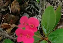 虎刺梅:别称铁海棠,是蔓生灌木植物。茎多分枝,长60-100厘米,直径5-10毫米,具纵棱,密生硬而尖的锥状刺,刺长1-1.5厘米,直径0.5-1.0 毫米,常呈3-5列排列于棱脊上,呈旋转。叶互生…全部>>