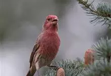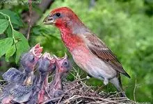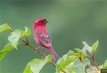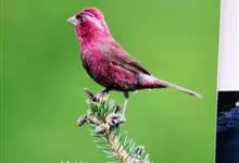 普通朱雀是雀形目雀科朱雀属鸟类,又名红朱雀、马料、青麻料。雄鸟上体红色,下体淡红色;头部、喉部、胸部及腰部亮红色;背部褐色染红色;两翼及尾黑褐色,羽缘染红色。雌鸟上体橄榄褐色,下体近白色,…全部>>