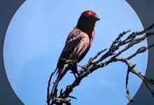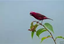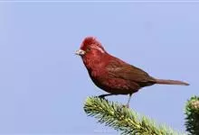 酒红朱雀小型鸟类,体长13~15厘米。雄鸟通体深红色,头部深朱红或棕红色,下背和腰玫瑰红色,眉纹粉红色而具丝绢光泽。两翅和尾黑褐或灰褐色、具暗红色狭缘,内侧两枚三级飞羽具淡粉红色先端。…全部>>