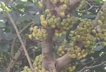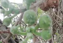 大果榕是桑科榕属的小乔木,株高可达10米;幼枝被柔毛;叶互生,宽卵状心形或近圆形;雄花无梗、匙形、花丝长,雌花生于雌株榕果内,子房白色;榕果簇生于树干基部或老茎短枝上、扁球形或陀螺形,…全部>>