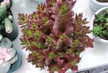 茜之塔 Toelken)是景天科青锁龙属多年生肉质草本植物。茜之塔叶交互对生,紧密排列,三角形,绿色,冬季叶转变呈红色;花小,白色;花期秋季。茜之塔因其整齐层叠的紫红色叶片让人想到红色佛塔,故名。…全部>>
