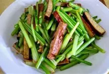 韭菜炒香干是一道菜品,制作原料主要有韭菜、香干等。鲜嫩可口,有点小小的微辣,加入切成段的韭菜,翻匀,…全部>>