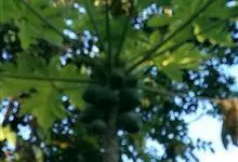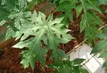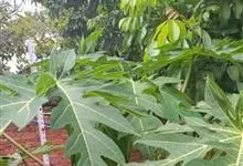 番木瓜,番木瓜科番木瓜属的常绿软木质小乔木,高达10米,具有乳汁;茎不分枝或有时于损伤处分枝;叶大且聚生于茎顶,近似盾形,叶柄中空;花单性或两性,有些品种雄株偶尔生两性花或雌花,…全部>>