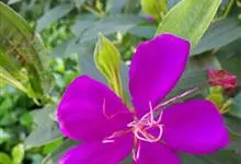 野牡丹:灌木,高0.5-1.5米,分枝多;茎钝四棱形或近圆柱形,毛扁平边缘流苏状。叶片坚纸质,卵形或广卵形,全缘,7基出脉,两面被糙伏毛及短柔毛。伞房花序生于分枝顶端,近头状,…全部>>