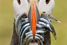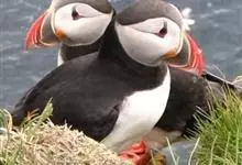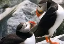 角嘴海雀,是海雀科、角嘴海雀属的中型海鸟,体长32-41厘米,嘴短而粗呈圆锥状、橙色。夏羽上嘴基部有一个三角形的突出物,形状如角。头两侧各有两条由白色丝状饰羽组成的纵带,分别位于眼上和眼下后方的头侧…全部>>