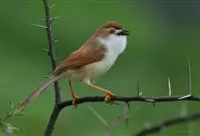 棕头雀鹛为鸦雀科,褐鹛属小型鸟类,体长10-13厘米。头顶栗褐色具黑色侧冠纹。上体茶黄色,飞羽外侧表面灰白色,内侧表面红棕色,内外二色之间夹有黑色。颏、喉白色具不明显的暗色纵纹,胸沾葡萄灰色,…全部>>