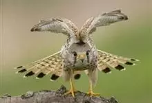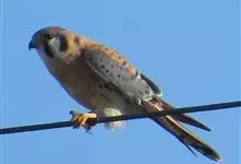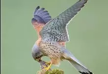 红隼:是隼科、隼属的小型猛禽之一。体重173-335克,体长305-360毫米。翅狭长而尖,尾亦较长,外形和共同爪隼非常相似。雄鸟头蓝灰色,背和翅上覆羽砖红色,具三角形黑斑;腰、尾上覆羽和尾羽蓝灰色,…全部>>