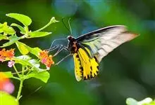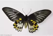 金裳凤蝶是凤蝶科、裳凤蝶属的动物。金裳凤蝶身体呈黑色,头、颈和胸侧有红毛,腹部有黑黄两色相间条纹,雄蝶前翅黑色,具黑天鹅绒光泽,各脉两侧灰白色,后翅金黄色,各室外缘有等腰三角形黑斑1枚,斑内侧有晕,…全部>>