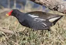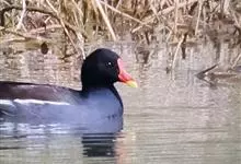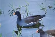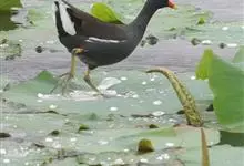黑水鸡:是鹤形目、秧鸡科的鸟类,共有12个亚种。中型涉禽,体长24-35厘米。嘴长度适中,鼻孔狭长;头具额甲,后缘圆钝;嘴和额甲色彩鲜艳。翅圆形,第2枚初级飞羽最长,或第2枚和第3枚初级飞羽等长,…全部>>