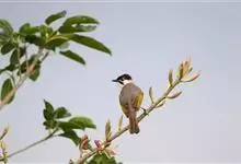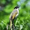 黑头鹎:体长17厘米。是一种中等体型的偏黄色鹎。特征为头辉黑、喉黑而眼蓝。上体黄橄榄色;两翼及尾偏黑,具明显的黄色尾端;下体绿黄色。另一罕见色型为灰色,尾缘白色。与黑冠黄鹎的区别在无羽冠且尾端黄色。…全部>>