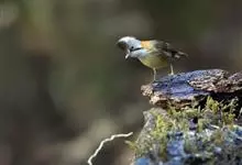 纹喉凤鹛:小型鸟类,体长13-16厘米。头顶和羽冠暗褐色或褐灰色,上体橄榄褐色,飞羽黑褐色,外侧次级飞羽表面橙黄色,构成一块纵形翼斑,极为醒目。颏、喉淡棕白色,具黑色纵纹,腹和尾下覆羽橙黄色。…全部>>