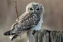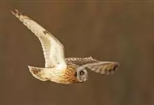 短耳鸮又名小耳木兔、田猫王、夜猫子等,是鸮形目鸱鸮科耳鸮属中小型猛禽动物。成鸟面盘显著,眼周黑色;眼先及内侧眉纹灰白色,面盘余部棕黄色杂以黑色细羽干纹;耳簇羽短小而几乎不外露,…全部>>