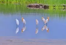 牛背鹭:体较肥胖,喙和颈较短粗。夏羽大都白色;头和颈橙黄色,前颈基部和背中央具羽枝分散成发状的橙黄色长形饰羽;前颈饰羽长达胸部,背部饰羽向后长达尾部,尾和其余体羽白色。冬羽通体全白色,个别头顶缀有黄色,…全部>>