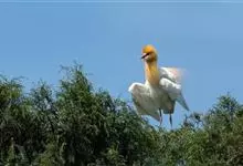 牛背鹭:体较肥胖,喙和颈较短粗。夏羽大都白色;头和颈橙黄色,前颈基部和背中央具羽枝分散成发状的橙黄色长形饰羽;前颈饰羽长达胸部,背部饰羽向后长达尾部,尾和其余体羽白色。冬羽通体全白色,个别头顶缀有黄色,…全部>>