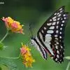 青带凤蝶Graphium sarpedon ,又名青凤蝶,是最普遍的中型凤蝶,飞行速度很快。青带凤蝶的翅膀中央有许多浅蓝色的斑点,很整齐地排列成一条直线。这些斑点由上而下逐渐变大,就像一条青色的带子。全部>>