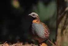 红腹角雉属于鸡形目雉科,雄鸟体羽及两翅主要为深栗红色,满布具黑缘的灰色眼状斑,下体灰斑大而色浅。雌鸟上体灰褐色,下体淡黄色,杂以黑、棕、白斑。全部>>