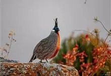 血雉雉科血雉属鸟类,别名血鸡、松花鸡,血雉的雄鸟大覆羽、尾下覆羽、尾上覆羽、脚、头侧、腊膜为红色,故称血雉。其别名甚多,各地皆异。在甘肃,因其胸侧和翅上覆羽沾绿,被称为“绿鸡”;因其羽毛形似柳叶,…全部>>