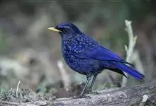 紫啸鸫是雀形目鹟科啸鸫属鸟类,又称黑雀儿,山鸣鸡、乌精。成鸟眼先及颏绒黑色;前额、头顶至背及肩羽和颈侧呈深紫蓝色,羽端具较密集的亮蓝色点斑;腰至尾上覆羽的深紫蓝色较暗而杂黑褐色,…全部>>