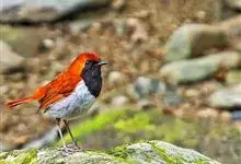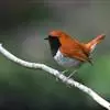 琉球歌鸲是鹟科、歌鸲属小型鸟类,体长约14厘米。雄鸟上体暗橙色,颏、喉、胸黑色。其余下体白色。雌鸟亦为橙色,颏、喉白色,其余下体污白色而缀有灰色。嘴峰黑褐色或褐色,脚肉色或肉黄色。…全部>>