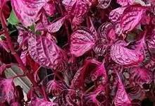 血苋是苋科血苋属的多年生草本植物。高1-2米;茎粗壮,常带红色,有分枝,有纵棱及沟;叶片宽卵形至近圆形,两面有贴生毛,紫红色;雌雄异株,花成顶生及腋生,圆锥花序,由多数穗状花序形成,苞片及小苞片呈卵形,…全部>>