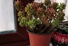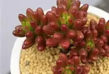 虹之玉是景天科景天属的多肉植物,多年生肉质草本植物。生长速度较快,叶片肉质,呈长椭圆形,约1厘米长,互生。花黄色,星形,秋冬季节或强光照下,叶片部分或全部转为鲜红色。生长适温10~28℃,…全部>>