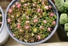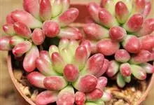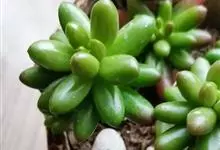 玉米石是景天科、景天属植物。多年生草本多浆植物。植株低矮丛生,多分枝。叶膨大成圆筒形、卵形或近小球形,互生至簇生,长0.6-1.2厘米,宽0.4-0.7厘米,叶端钝圆,亮绿色,肉质,硝带红晕,…全部>>