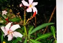 夹竹桃,又名红花夹竹桃、欧洲夹竹桃,是夹竹桃科夹竹桃属的一种常绿直立大灌木,枝条灰绿色,含水液。叶披针形,3叶轮生。聚伞花序顶生,花冠粉红至深红色,花冠漏斗状,有特殊香味。蓇葖果,圆柱形。种子长圆形,…全部>>