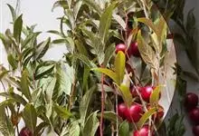 欧李,蔷薇科李属落叶灌木植物,高1.5米。树皮灰褐色,小枝被柔毛;叶互生长圆形或椭圆状披针形;花与叶同时开放,单生或并生,花瓣白色或粉红色;核果近球形,熟时鲜红色或橘黄色。花期4-5月,果期5-6月。…全部>>