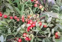 欧李,蔷薇科李属落叶灌木植物,高1.5米。树皮灰褐色,小枝被柔毛;叶互生长圆形或椭圆状披针形;花与叶同时开放,单生或并生,花瓣白色或粉红色;核果近球形,熟时鲜红色或橘黄色。花期4-5月,果期5-6月。…全部>>