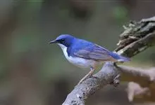蓝歌鸲是雀形目鸫科歌鸲属鸟类。雄鸟头至整个上体普蓝色,眼先、头侧和颊部近黑色,耳羽和颈侧黑蓝色,颊后黑纹经颈侧延伸至胸侧,在上体的蓝色区域和下体的白色区域间形成鲜明的间隔;飞羽和尾羽黑褐色,…全部>>