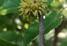 栓皮栎是壳斗科栎属的高大落叶乔木。株高达30米;树皮深纵裂;小枝无毛;叶片卵状披针形或长椭圆状披针形,基部宽楔形或近圆,具刺芒状锯齿;果壳斗杯状,顶端平圆;花期3-4月;果期翌年9-10月。…全部>>