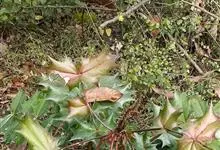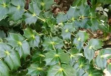 十大功劳 Fedde),小檗科十大功劳属常绿灌木植物。叶子较大且较多,呈椭圆形,绿色,表面光滑无毛,叶柄较长;花朵较小,呈多边形,黄色,花瓣对称分布,表面有绒毛;果实呈圆形,褐色,…全部>>