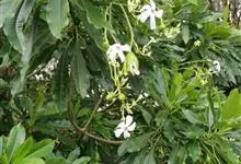 海杧果是夹竹桃科海杧果属的乔木。高4~8米;树皮为灰褐色;全株有丰富乳汁;叶厚纸质,呈倒卵状长圆形或倒卵状披针形,叶面为深绿色,叶背为浅绿色;花为白色,有芳香;核果双生或单个,呈阔卵形或球形,…全部>>
