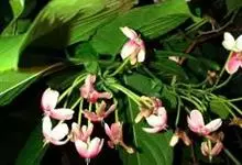 使君子 Jongkind)是使君子科、使君子属攀援灌木,叶对生,椭圆形,两面均被灰白色柔毛。穗状花序,倒挂下垂。花期夏秋。果有五棱,熟时黑色,种子白色。分布于印度、缅甸、菲律宾和中国。喜温润,深根性,…全部>>