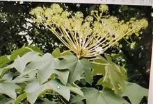 刺楸 Koidz.),五加科刺楸属落叶乔木,高30米。树干通直;树皮纵裂灰黑褐色;叶掌状分裂长圆状卵形;伞形花序,花较小白色或淡黄绿色;果蓝黑色;花期7-8月,果期9-11月。变种有深裂叶刺楸,…全部>>