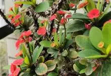 铁海棠为大戟科大戟属蔓生灌木植物;茎多分枝,具纵棱,呈旋转状;叶互生,通常集中于嫩枝上;每个花序基部边缘具微小的红色尖头;苞叶先端圆且具小尖头,无柄,上面鲜红色,下面淡红色;苞片丝状;子房光滑无毛,…全部>>