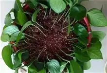 红苞喜林芋是天南星科喜林芋属植物,攀援植物,分枝节间淡红色,长3-8厘米,粗1厘米。鳞叶肉质,红色,背面有2条龙骨状突起,长7-10厘米。叶柄腹面扁平,背面圆形,长15-25厘米,粗7-10毫米。…全部>>