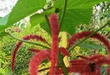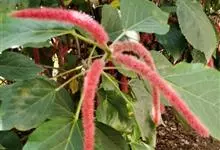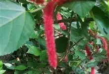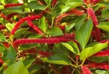 红穗铁苋菜:为大戟科、铁苋菜属植物,灌木,高0.5-3米。嫩枝被灰色短绒毛,毛逐渐脱落,小枝无毛。 花序色泽鲜艳,葇荑花序下垂,如狐狸尾状,雌花近卵形,长约0.8毫米,顶端急尖,具短毛;子房近球形,…全部>>