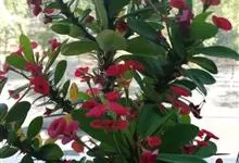 虎刺梅:别称铁海棠,是蔓生灌木植物。茎多分枝,长60-100厘米,直径5-10毫米,具纵棱,密生硬而尖的锥状刺,刺长1-1.5厘米,直径0.5-1.0 毫米,常呈3-5列排列于棱脊上,呈旋转。叶互生…全部>>